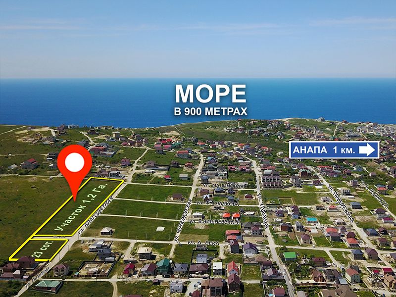 Участок в 900 метрах от берега моря.