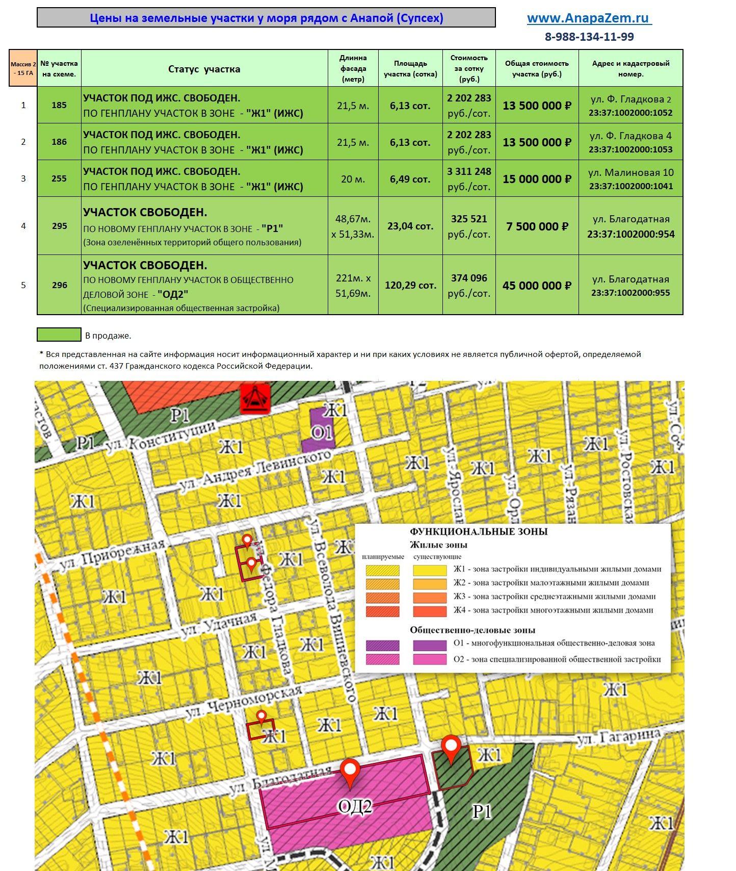 Согласно Град.плану и ПЗЗ Анапы, участок находится в зоне "ОД2" - общественно-деловой застройки, что открывает следующие возможности: