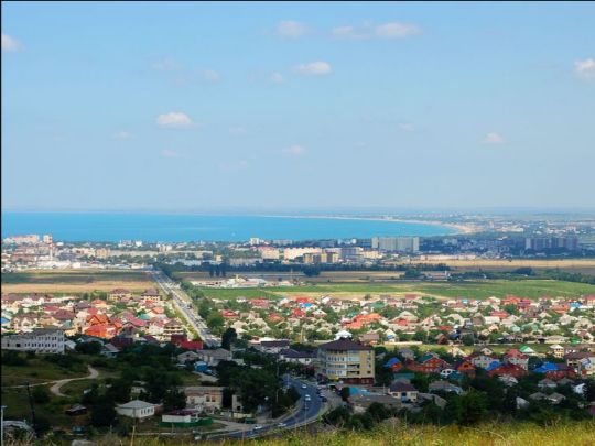 Вид на Анапу, море и горы.