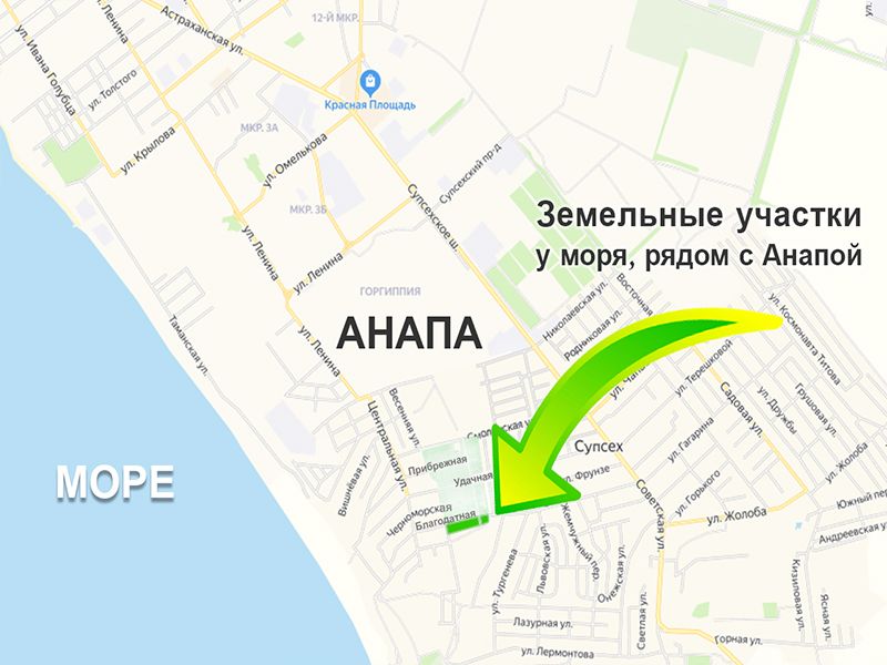 📍 Ориентир: Анапа, Супсех, пересечение улиц Благодатная и Александра Бека.